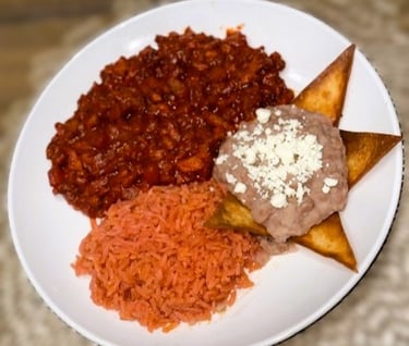 Mexican style egg, chorizo, bacon, potato, ham with eggs (only in breakfast).
